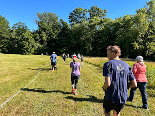The weather was lovely. The fastest person finished in 16 minutes. The last person finished just under an hour. Both were happy with their times. The race started with a loop through the grass, which separated us just as the "spiral of death" does at RunBucks races. Half a mile after starting we were on the towpath, which we shared with people taking walks, biking, running, and otherwise enjoying the day. It was sunny and in the upper 60s, a tad warm for serious runners and perfect for fun runners and walkers.